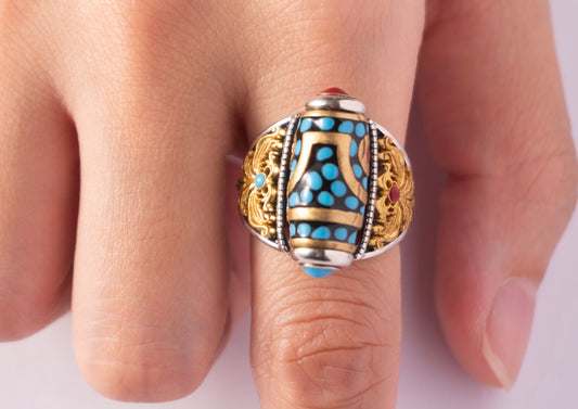 Tibetan Six-Syllable Mantra Silver Ring Buddha
