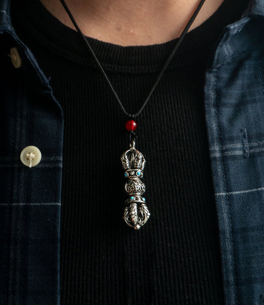 Tibetan Style Demon-Subduing Mace Silver Pendant