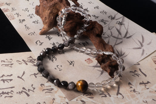 Handmade Tiger's Eye Black and White Crystal Double Loop Energy Bracelet