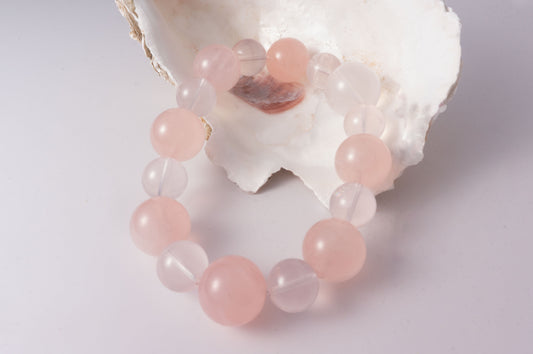 Handmade Rose Quartz and Clear Quartz Romantic Bracelet