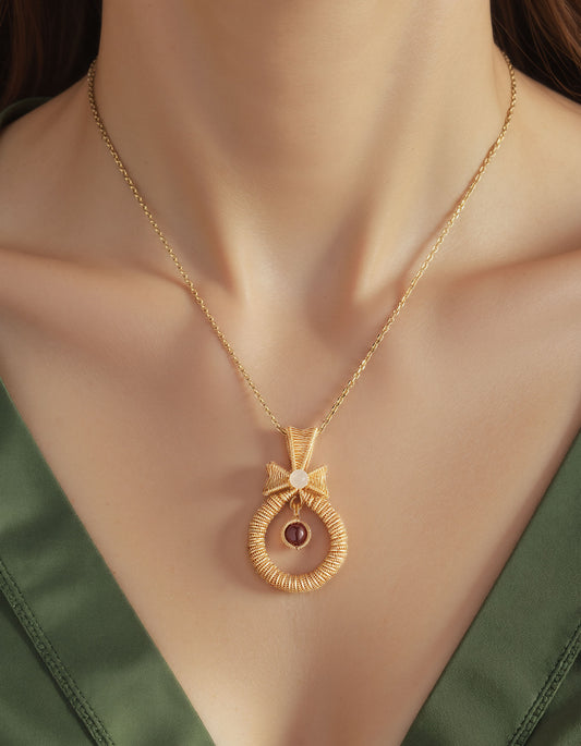Handmade Garnet Golden Wreath Necklace