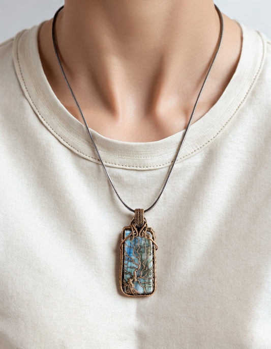 Handmade Square Labradorite Necklace with Tree of Life