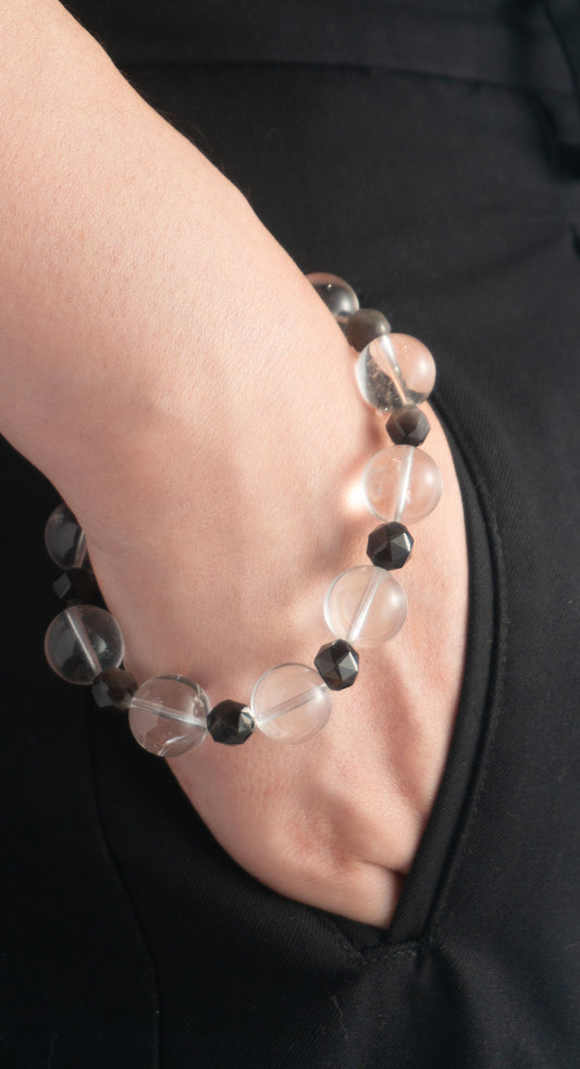 Handmade Silver Obsidian and Clear Quartz Spirit Healing Bracelet