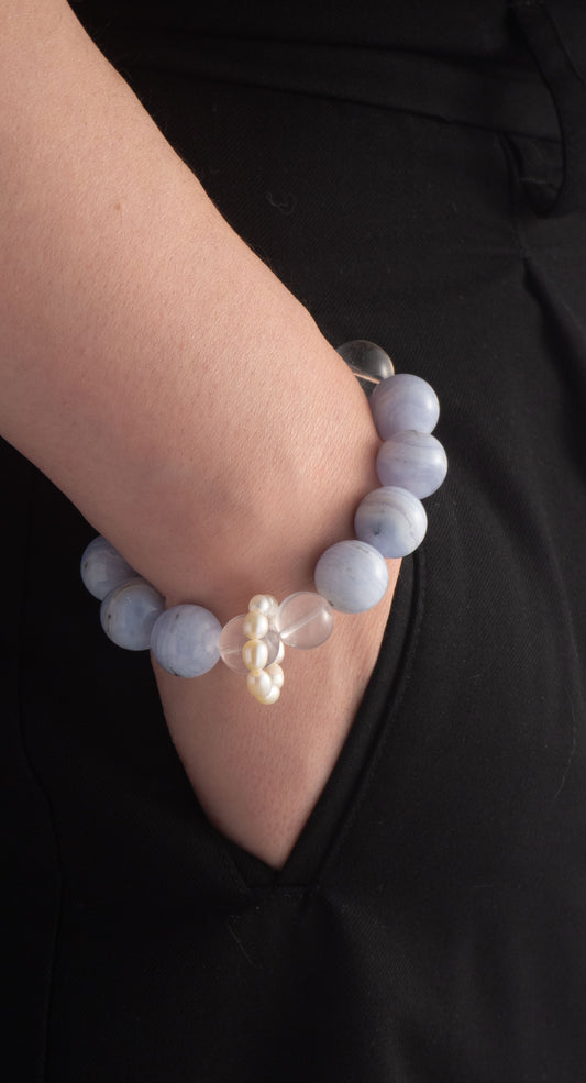 Handmade Aquamarine and Clear Quartz Purification Bracelet
