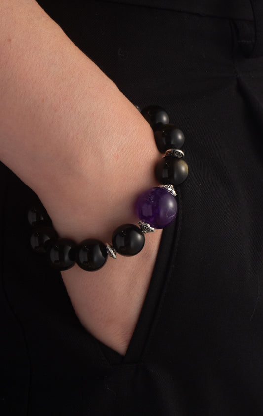 Handmade Amethyst and Obsidian Fortune Bracelet