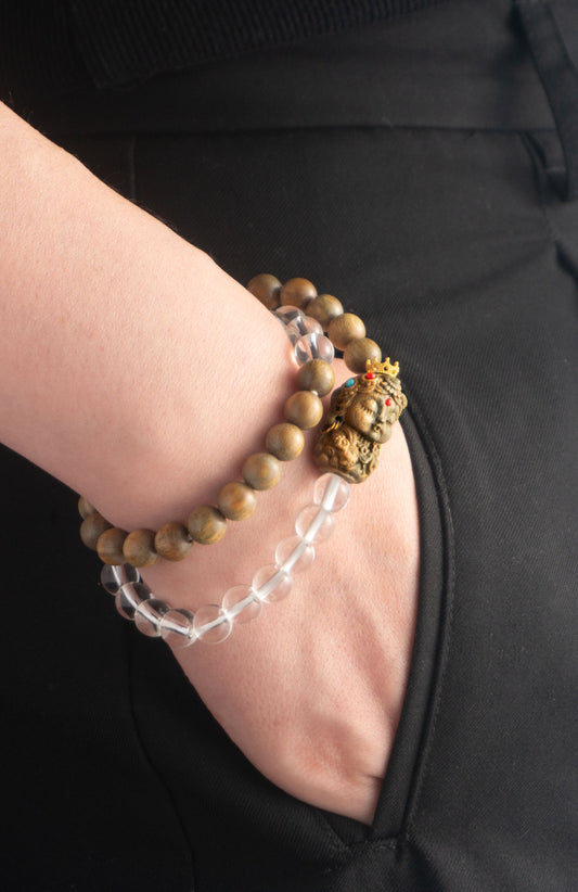 Handmade Dongling Jade bracelet with Cinnabar and Tibetan Dzi Bead